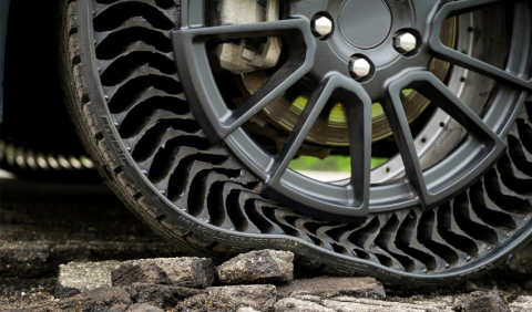 El fabricante francés de neumáticos Michelin presentó su primer prototipo de neumático diseñado a través de la fabricación aditiva: Uptis, que viene de Unique Puncture-proof Tire System o sistema anti pinchazos. Este nuevo desarrollo es un conjunto montado, es decir, rueda/neumático, ¿lo mejor? sin aire para evitar todos los pinchazos. La compañía trabajó con el fabricante estadounidense General Motors, que ya cuenta con una trayectoria en la impresión 3D, para presentar un prototipo impreso en 3D en la cumbre «Movin’On» dedicada a la movilidad sostenible en Montreal. Con este neumático a prueba de pinchazos, esperan reducir la cantidad de neumáticos que se tiran debido a los pinchazos y brindar mayor seguridad a los conductores.